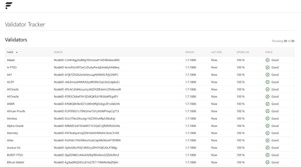 - Uptime: Monitor IP uptime, which indicates their ability to maintain consistent operation. See below (Flare Validator Tracker).