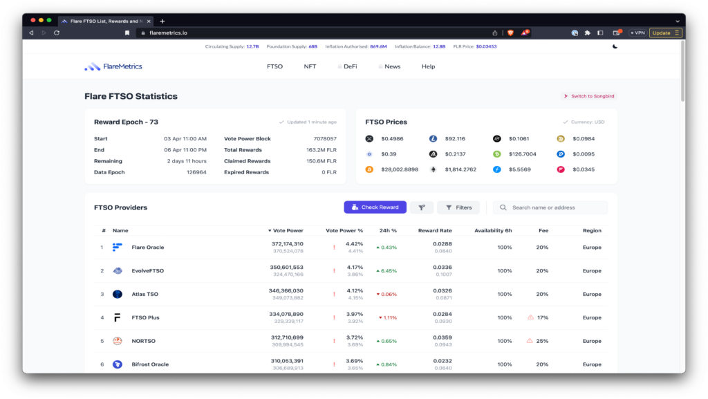 Both the FlareDrops and FTSO Delegation Rewards can be automatically claimed and wrapped to maximize compounding. This feature will also be available on Songbird in the near future.