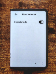 - Once you see “Flare Network Ready,” click through (right button press) until you see the “Expert mode:” option.